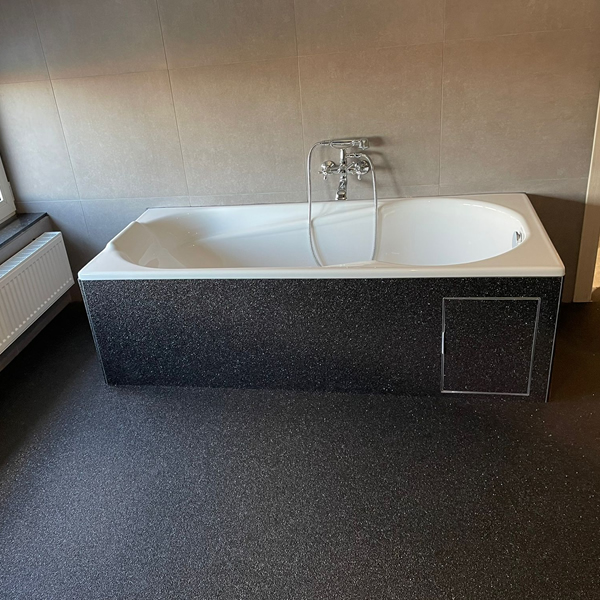 Badkamer bekleed met steentapijt